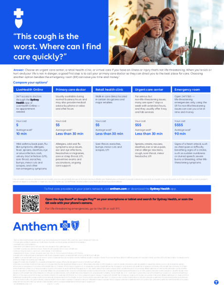 Available with Anthem plans, LiveHealth Online puts you in control of when and where you access care. You have access to: